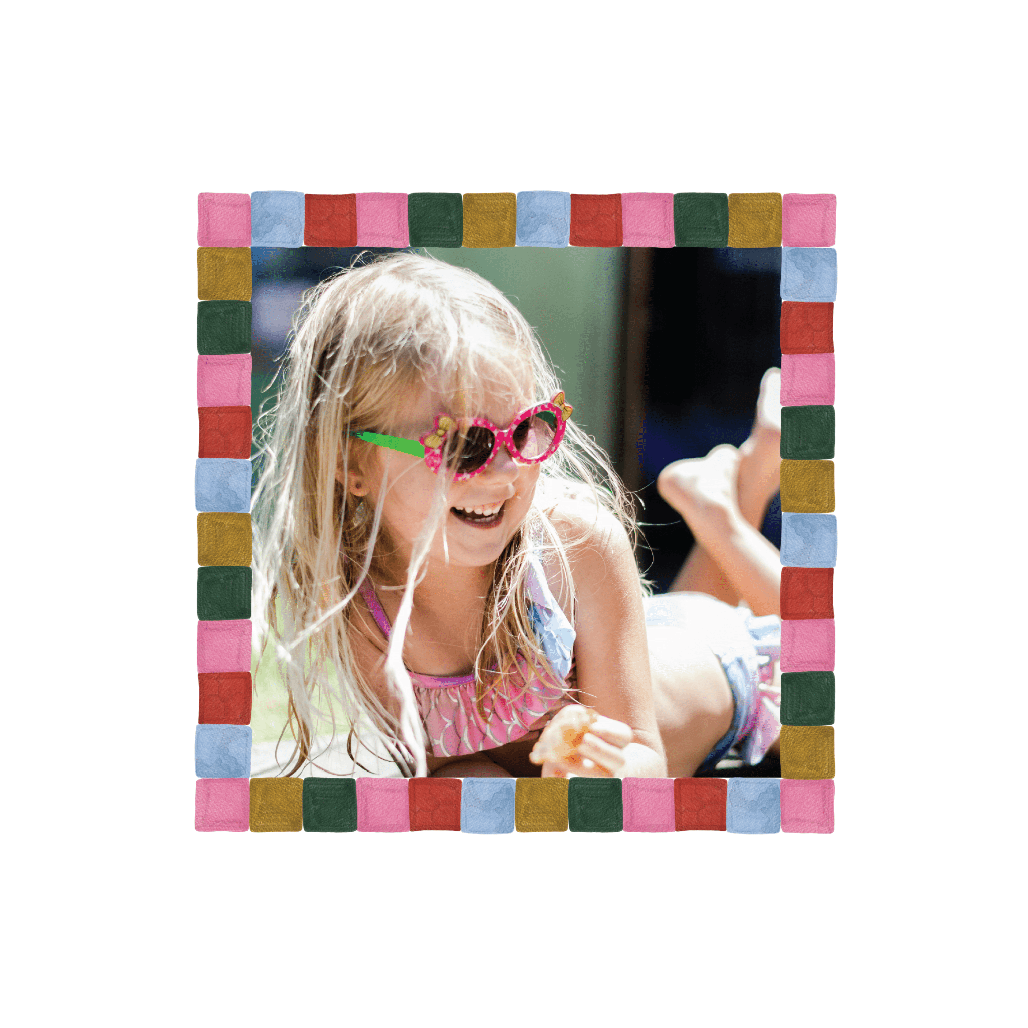 : Square Scallop Smooth Frame - Pink and Blue